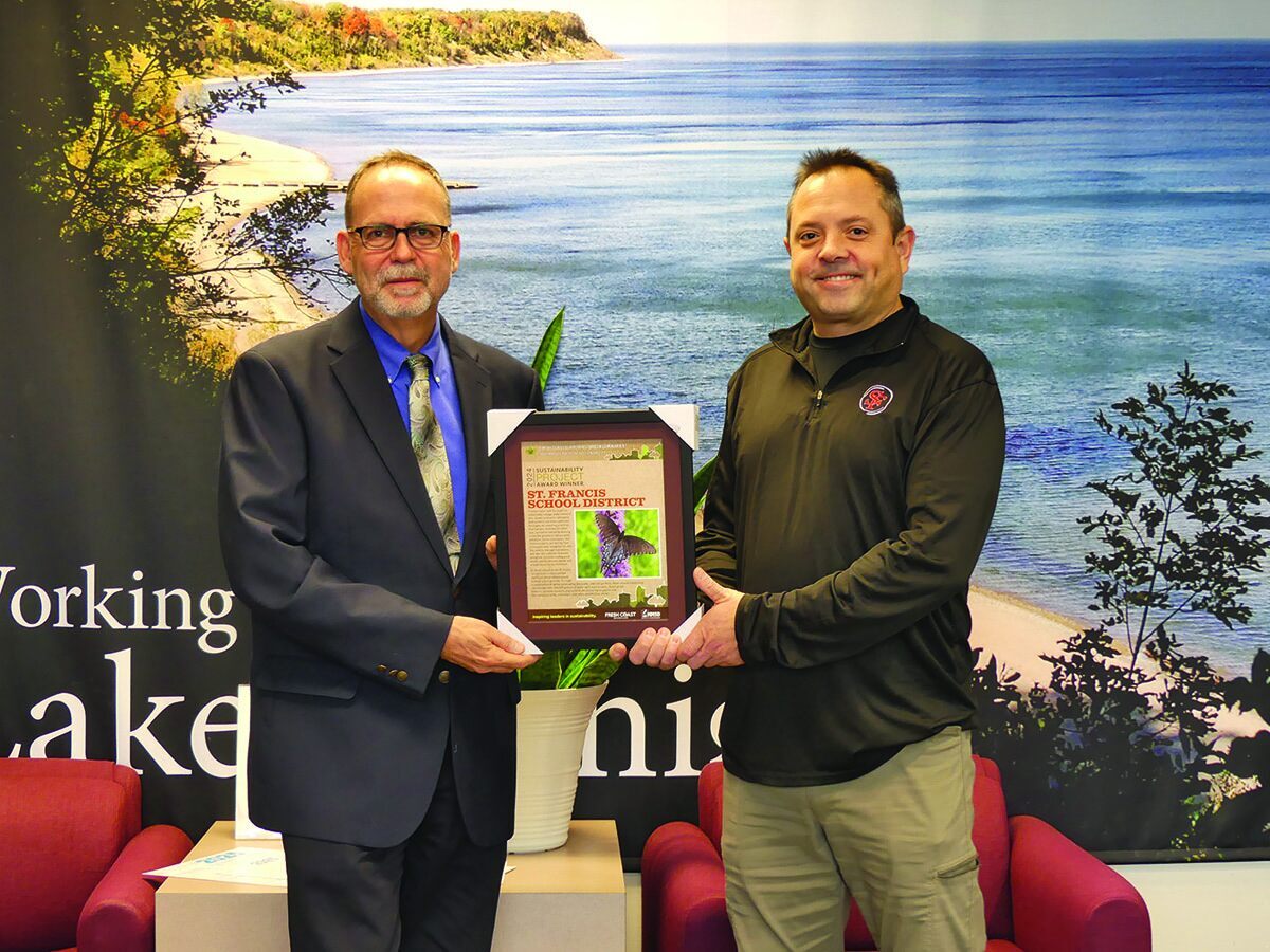 The St. Francis Public School District won the Green Luminary Award from the Milwaukee Metropolitan Sewerage District changing its grounds into green-friendly landscaping.