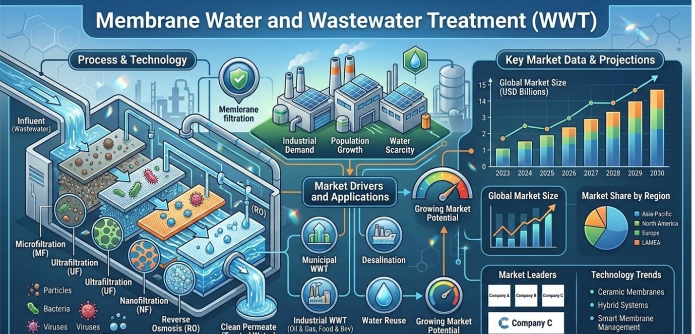 Membrane Water and Wastewater Treatment (WWT) technologies have emerged as a highly efficient and reliable solution. These advanced filtration systems are capable of removing microscopic pollutants, pathogens, and dissolved solids, ensuring safe and reusable water. As water scarcity intensifies worldwide, membrane-based treatment systems are gaining significant momentum in global water management strategies.